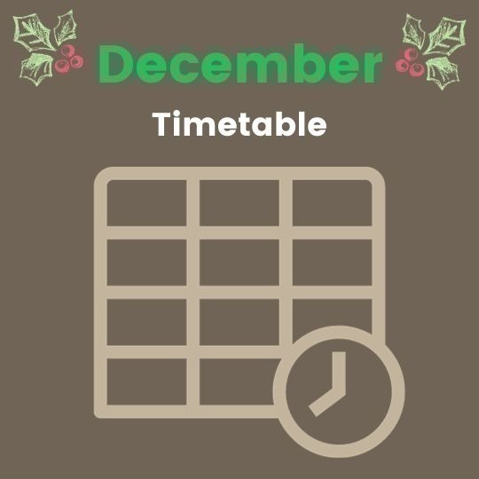 View the PDF attached to see the full December timetable and then book your lessons through the app.