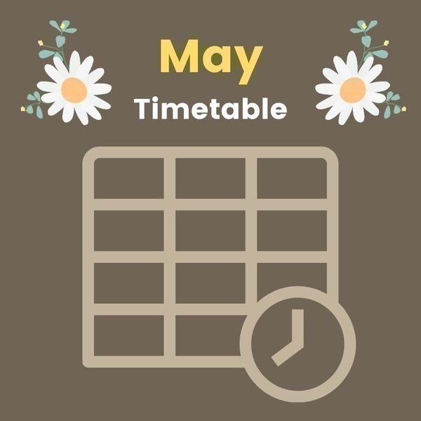 View the PDF attached to see the full May timetable and then book your lessons through the app. Please note we are CLOSED on Saturday 6 May.