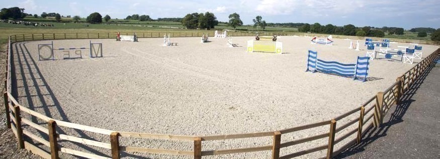 A large outdoor school, 50m x 90m with a sand and fibre surface and radius corners. Available with the arena is a judges/commentary box with a timing and PA system.